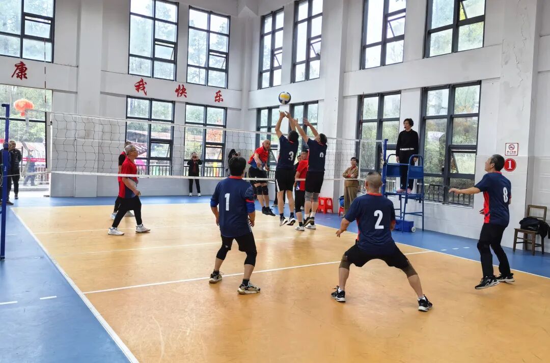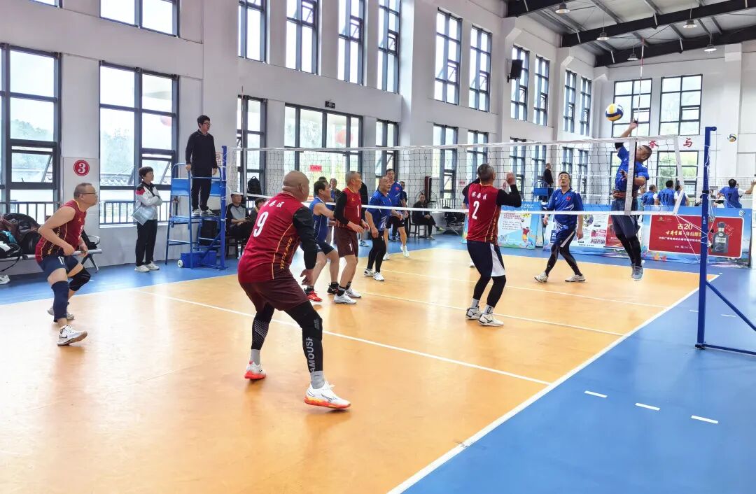 11月10日,九江市第九届老年人体育健身运动会男子气排球比赛在县老年体协火热开赛。
