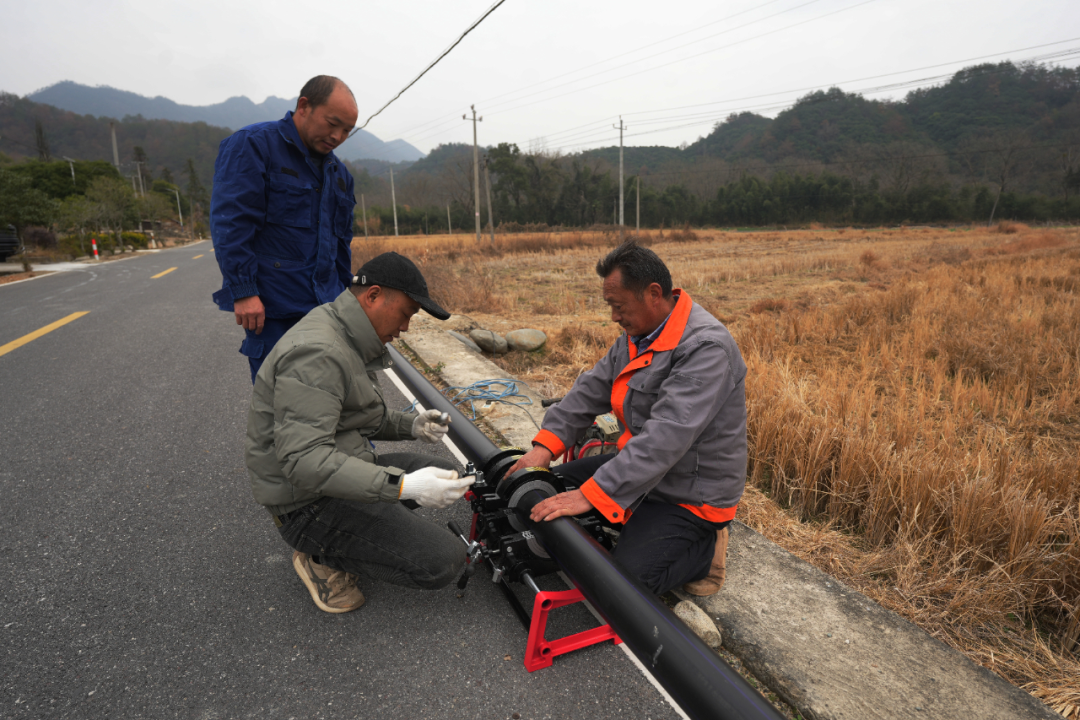 近日,在甫田乡烟港村自来水管网延伸项目施工现场看到,机器轰鸣,不停开挖沟槽,工人们正忙着铺设熔接水管,项目竣工后,该村1800多名村民将彻底告别挖井取水的历史,喝上安全放心的自来水。