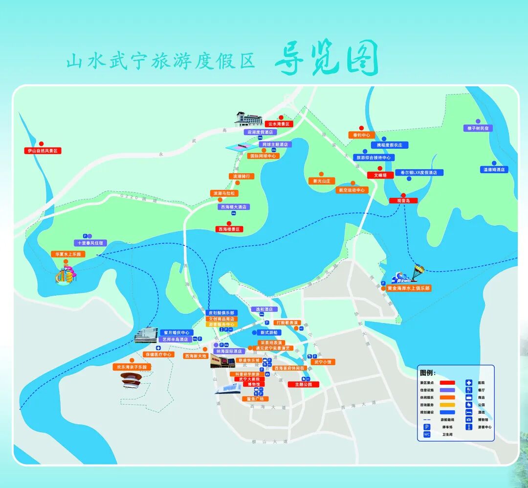 位于武宁县湖滨东路,景区内以水上运动、休闲娱乐等地方特色为主,在传统旅游的基础上让游客的参与性、体验性更高。景区主要项目包括:水上降落伞、运动快艇、动感摩托艇、香蕉船、水上拖拉圈、水上飞行器、米兰游艇、水上竹筏、龙舟、水上闯关、皮划艇、大黄鸭亲子脚踏船、休闲垂钓、等游玩项目及专业水上表演。