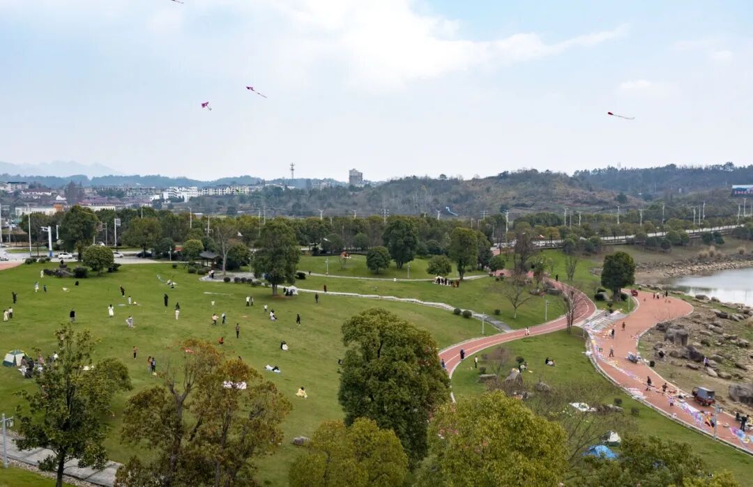 近年来,我县以“建设人在画中的城市”为目标,着力构建城市绿色康养新生态。截至 2024年底,城区绿化占地面积达783.65公顷,绿化覆盖面积843.56公顷,人均公园绿地面积达9.76平方米,公园绿化活动场地服务半径覆盖率达到86.79%,多项指标稳居省市前列。